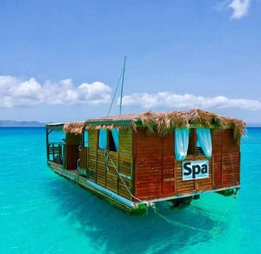 Ocean Spa BVI, the only floating spa in the Caribbean, was built out of lumber from the wreckage of Hurricane Irma.